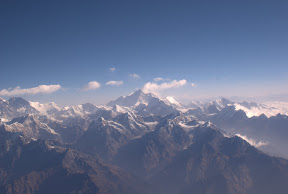 Sidste destination er Kathmandu, hvortil vi ankom fredag d. 20 februar; byen bringer os lidt tættere på "Indien-stilen" med lidt for mange mennesker og nogle sælgere, der hænger ved lidt for længe, men er stadig vand ved siden af Indien. Og så har vi nok også vænnet os lidt til det efterhånden, så indtrykket ikke er så stærkt. Kathmandu har dog bl.a. fortove så man kan gå nogenlunde sikkert (modsat Delhi) og knapt så mange køer og geder i gaderne ! Vi var en tur forbi "abe-templet" (officielt Swayambhunath), som er opkaldt efter de horder af aber der kravler rundt på og omkring templet. Derudover fik vi en guidet tur på Durbar Square, hvor der ligger en myriade af templer, pladser o.lign., som man hurtigt kan bruge en dags tid på. Vi var også forbi templet for "the living goddess" men hun tog ikke imod den dag (en 3-årig pige, der er udvalgt til at være gudinde, indtil hun når puberteten !?). Lørdag morgen havde vi endnu en sidste aktivitet på turen, nemlig en flyvning over til Mt. Everest, som rejser sig små 8848m over havoverfladen; dvs. for dem som havde lyst til at betale 165 USD for 1 times flyvning og sightseeing af bjerge. Det ville vi gerne, og det var bestemt pengene værd. Vi fik et rigtigt godt udsyn over bjergkæden, og fik set verdens højeste bjerg på rimelig tæt hold. Desværre kan man ikke flyve rundt om det, for så krydser man ind i Kina, men flyveturen var stadig vældigt god - og vi tog masser af billeder.
