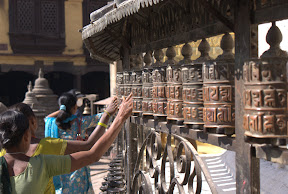 Resten af tiden i Kathmandu er gået med en masse praktiske ting og sager. Vi har bl.a. holdt adskillige afskedsmiddage sammen med vores tourgruppe, efterhånden som der faldt flere og flere fra, så det blev til en både fredag, lørdag, søndag og mandag idet vi havde 3 ekstra overnatninger i Kathmandu på egen regning. De fleste smuttede dog lørdag og søndag. Derudover har vi brugt det meste af 2 dage på at rode med visum. Dels en forlængelse af vores Nepal visum med 3 dage, fordi vi ikke har lyst til at tage tilbage til Indien (det kostede os lige 400 kroner), og dels et længe ventet Kina visum, som endelig er faldet på plads (små 700 kroner). Vi panikkede lidt, da vi søndag kunne konstatere at vores invitationsbrev fra Jan i Shanghai ikke længere var gyldigt; vi fik dog fat i ham, men da vi så mandag morgen skulle udskrive det, var der ingen strøm; og fotokopiering af vores flybilletter var også lidt af et show. Puha - det lykkedes dog alt sammen.