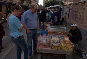 Maden i Kina har indtil videre været lidt af en prøvelse - og det er nok det sted på vores 9 måneders tur, hvor vi har fået mest kamp til stregen. Den første udfordring man møder, er begrænset engelsk og begrænset udbud af engelske menukort. Når der så endelig er billeder eller halv-oversættelser, finder man ud af, at mange af retterne ikke lige er noget man har lyst til at sætte tænderne i. Kineserne spiser ALT muligt, som vi ihvertfald ikke har haft lyst til at prøve. Det er bestemt ikke en myte, at man finder hønsefødder, tyrepenis, æselhove, svineindvolde, og andet godt på menukortet. Nogle steder har det været de dominerende retter, og at finde noget andet har krævet en del. Når vi så endelig har bestilt nogle retter, så har det ofte smagt noget anderledes end man havde forestillet sig (eller håbet på). I Xian fik vi den første aften nogle gode (kød)retter, men vi kunne simpelthen ikke vride to skåle ris ud af servitricerne, så det var svært at spise sig mæt. Vi prøvede også at bestille kylling på to forskellige måder, og her var der mere ben-rester og knogler end kød, så det var heller ikke en succes. Maden i Pingyao har været decideret dårlig, og meget cafeteria-agtig; noget af det kunne vi få ned, men det har bestemt ikke været en god oplevelse at spise på restaurant. Vi har haft mest held i Datong, hvor vi fandt en virkelig god restaurant, og hvor vi fik en masse retter, som alle var vældigt gode, velsmagende og "normale" - og for en gangs skyld gik man propmæt i seng !